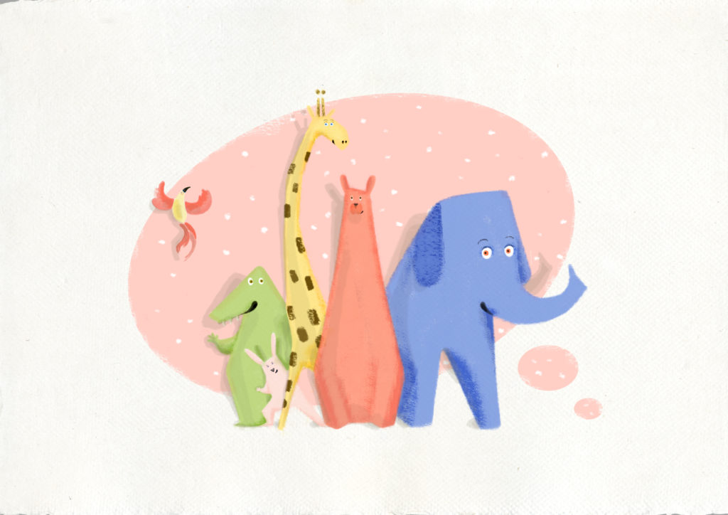 איור דיגיטלי פוסטר החיות של גפן. תמונה לעיצוב חדר ילדים או לילדים בליבם.